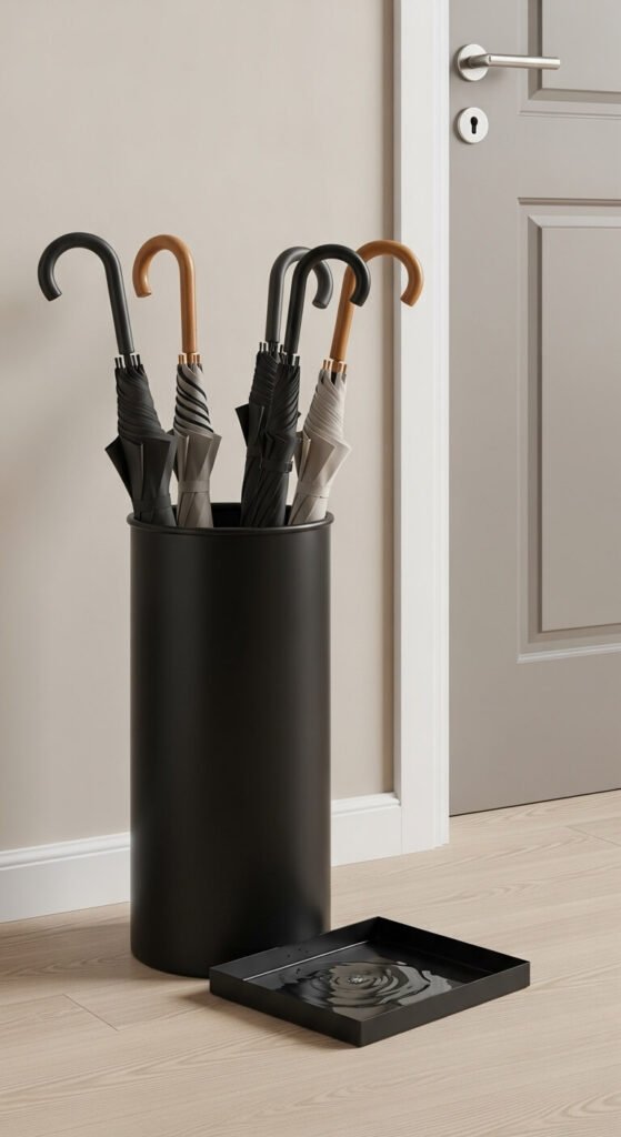 Wet umbrellas drip everywhere when you prop them against walls. A proper stand contains the mess and keeps umbrellas accessible.
