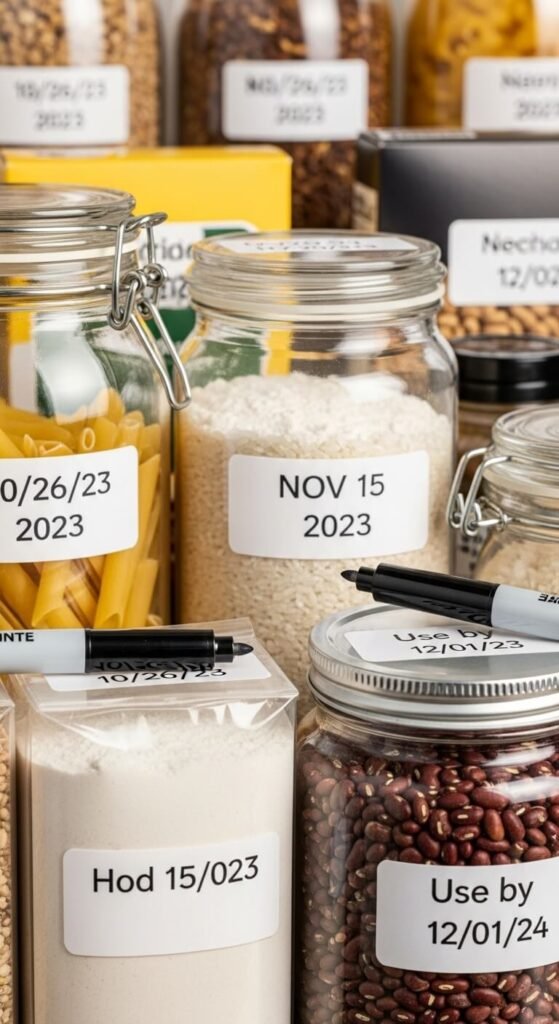 Writing purchase or expiration dates on containers and packages prevents food waste. Use a permanent marker to note the date on the top or front of each item when you bring groceries home. This takes 30 seconds but saves money by ensuring you use older items first. For bulk goods transferred to containers, write the date you opened them. Flour, nuts, and grains go rancid faster than you think. Keep a marker in your pantry for quick labeling. Review dates monthly and move items nearing expiration to the front of shelves.
