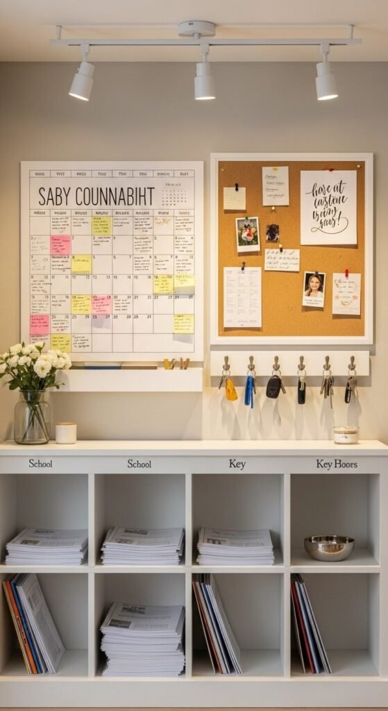 A command center is your family’s headquarters—a dedicated space that centralizes schedules, reminders, paperwork, and daily essentials. It typically includes a calendar, message board, mail sorter, and hooks for keys and bags. The goal is simple: create one place where everyone can check what’s happening and drop off important items when they walk through the door.