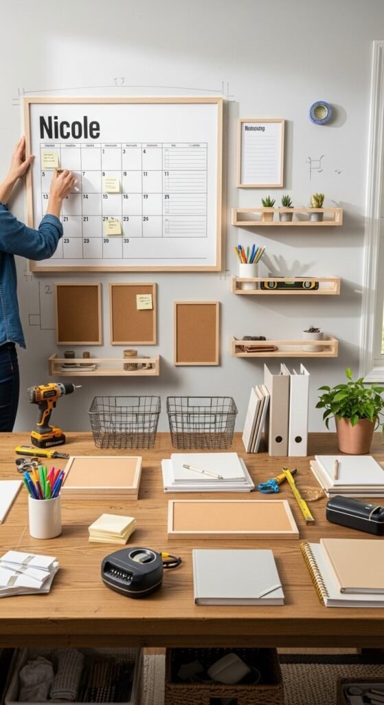 Step 2: Choose your style. Your command center should match your home’s aesthetic. Farmhouse? Go with wood and metal accents. Modern? Think sleek boards and minimalist hooks. The more it fits your style, the happier you’ll be to use it.