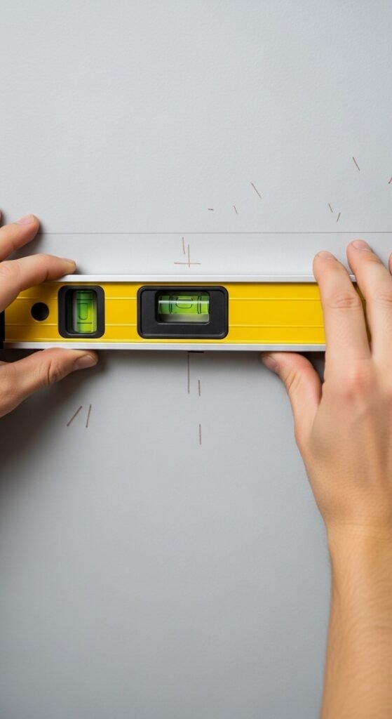 Measure up from the floor to your chosen height on both walls. Use your level to draw a straight horizontal line connecting these points. Nothing screams “amateur” like a slanted closet rod.