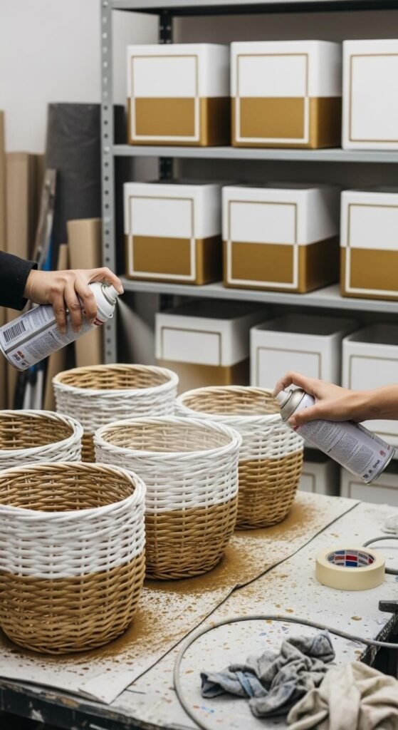 If you’ve got plain canvas or wicker bins, a little paint can transform them completely.