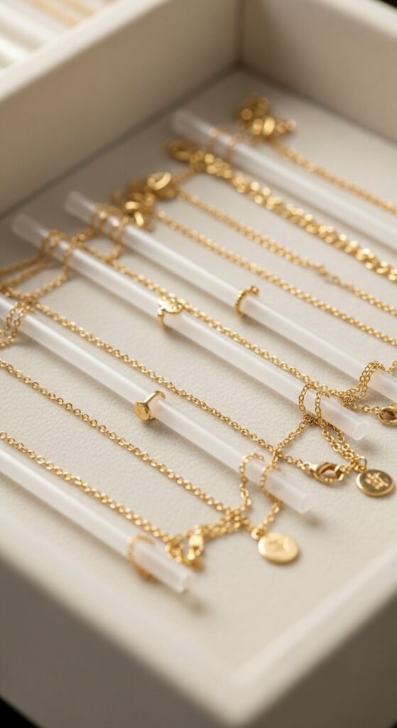 - Thread delicate chains through drinking straws before fastening the clasp