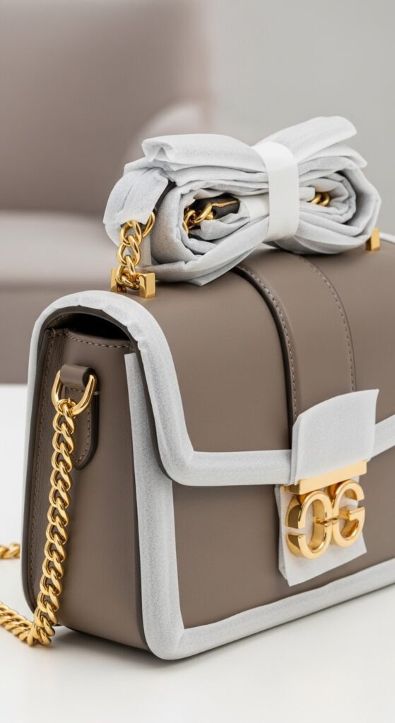Those chains, buckles, and straps need attention too. Before storing any bag, tuck chains inside to prevent scratching, wrap long straps around the bag or tuck them inside, and stuff any pockets that might collapse.